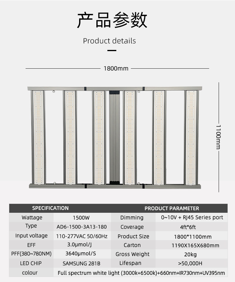 1500W加宽大灯板植物灯